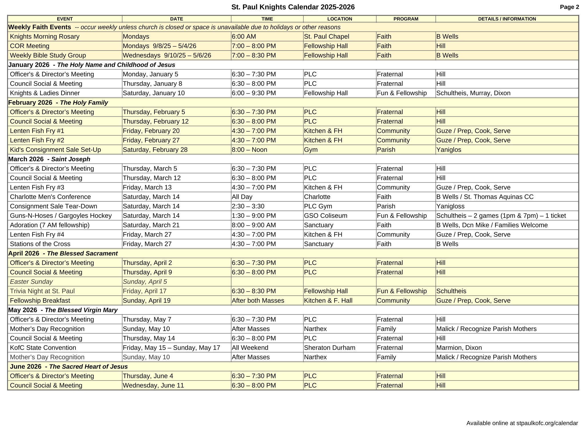 Calendar Calendar of Events • Jan – Jun 2026 Click here to view and download full year calendar (PDF) Click here to volunteer